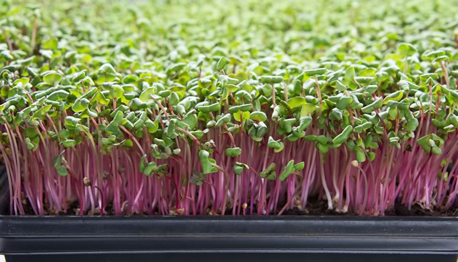 Like radish but milder. Not just a fantastic garnish, with their coloured stems and leaves, radish microgreens are also high in Chlorophyll, Vitamin K, Vitamin C, Beta Carotein, and Vitamin E.