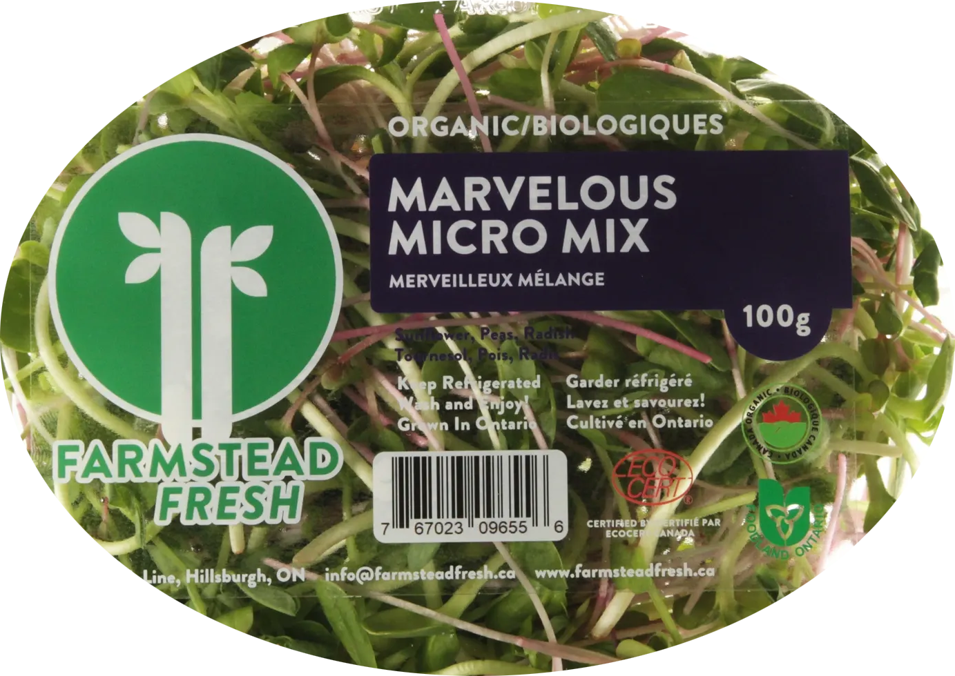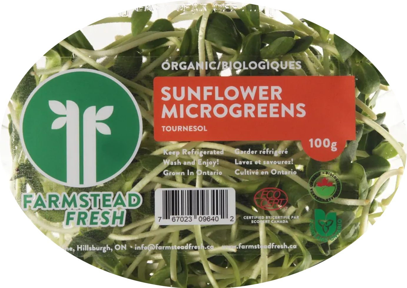 At Farmstead Fresh, we grow high quality certified organic Microgreens year-round, including some of the best Sunflower Microgreens in the Greater Toronto Area, using quality organic, non-GMO seed and locally produced, compost-rich soil. We also produce, nutrient-dense Pea shoots, spicy Radish, Broccoli Microgreens.